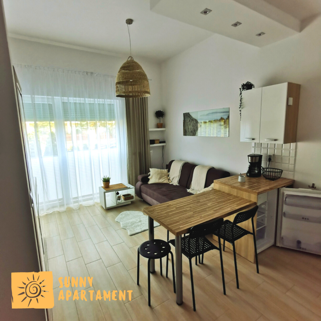 Apartament przy ul. Północnej 19D w Darłowie (Darłówko Wschodnie), 28m2, dwa łóżka z możliwością połączenia, sofa rozkładana oraz aneks kuchenny w pełni wyposażony. Apartament na parterze z mini ogródkiem. 300m od plaży przy wejściu wschodnim, 100m od Aguaparku.